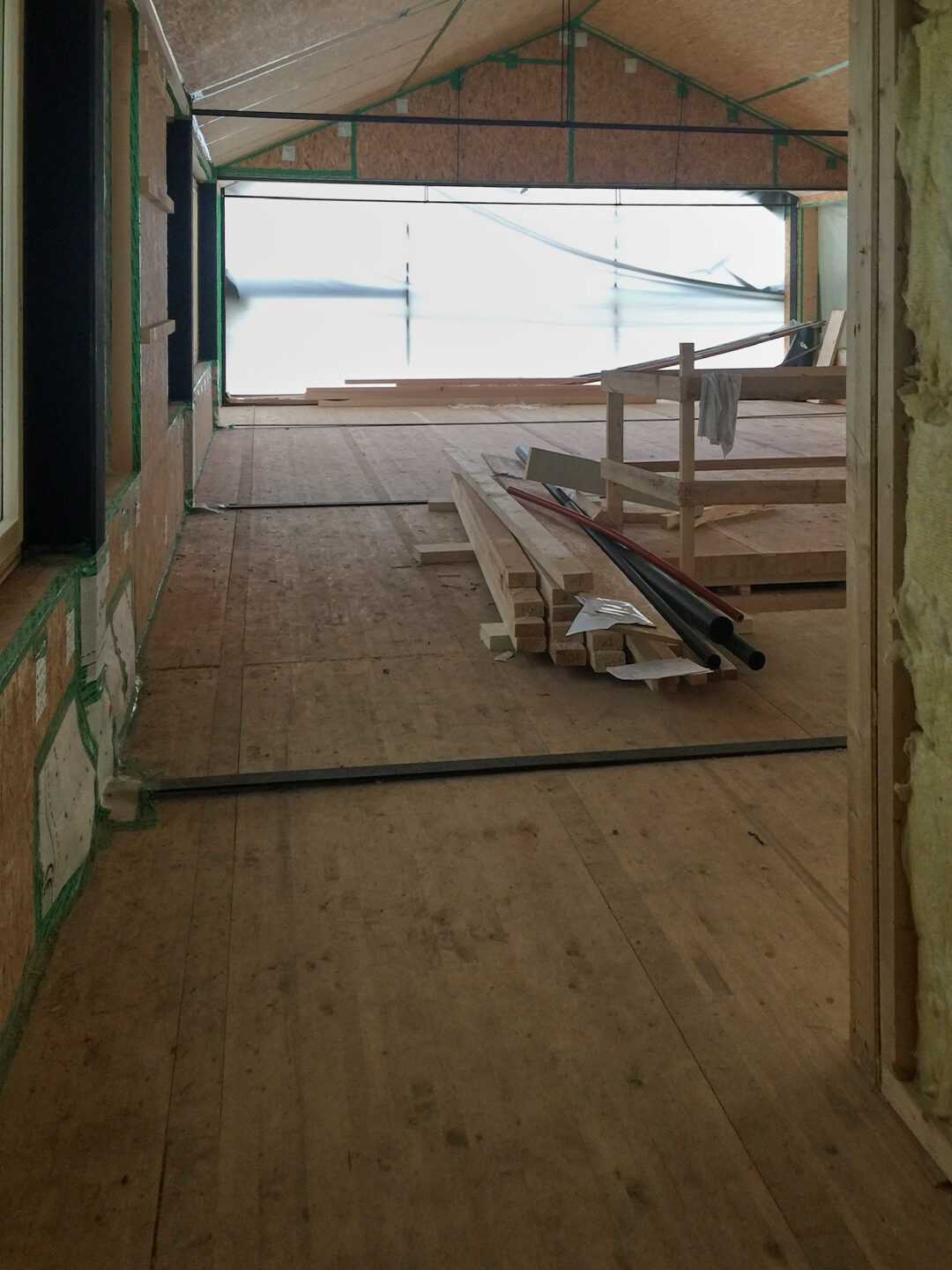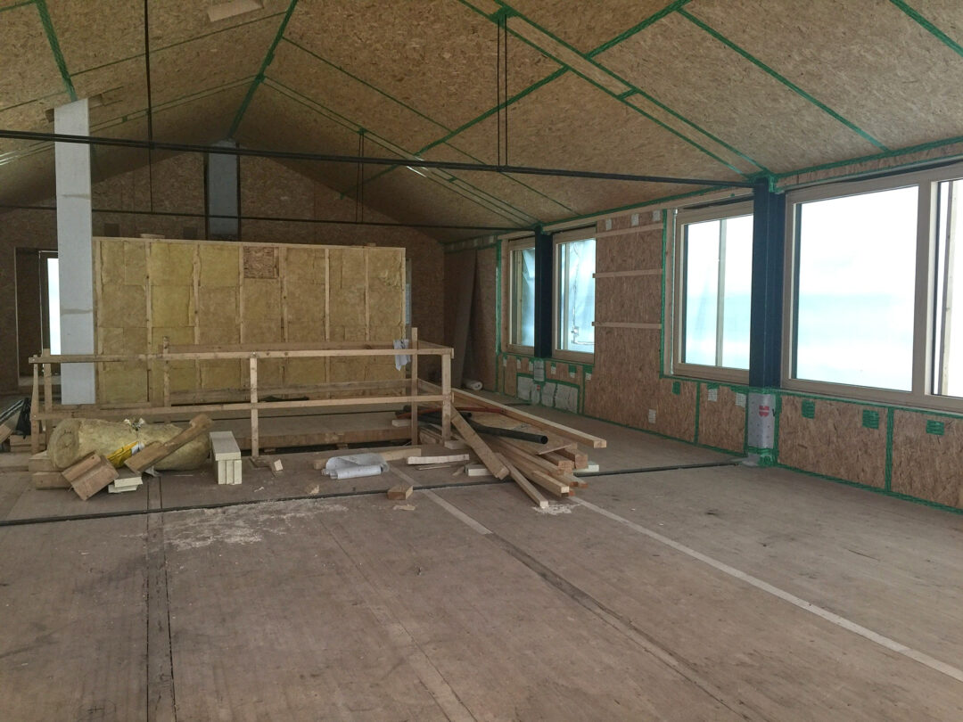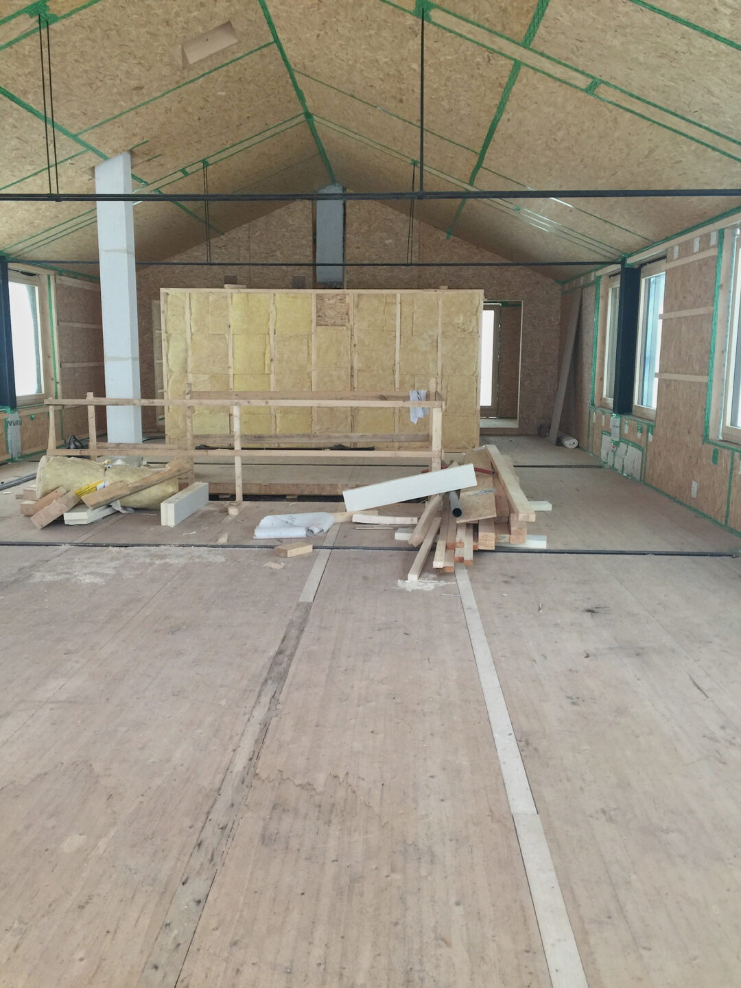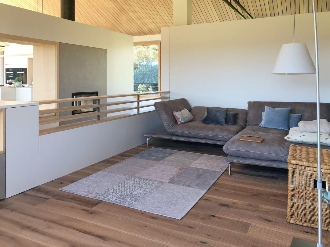 Der Dachstuhl eines alten Bauernhauses wurde durch einen modernen Aufbau in typischer Vorarlberger moderner Architektur aufgestockt. Meine Aufgabe bestand darin, im Raum ein Zentrum zu schaffen und die bestehende Treppe so zu integrieren, dass sie den Raum nicht trennt, sondern verbindet. Ich gestaltete ein Konzept, das Wohn -und Essbereich durch eine Glasnische verbindet, gleichzeitig Stauraum und individuelle Wohnbereiche schafft.